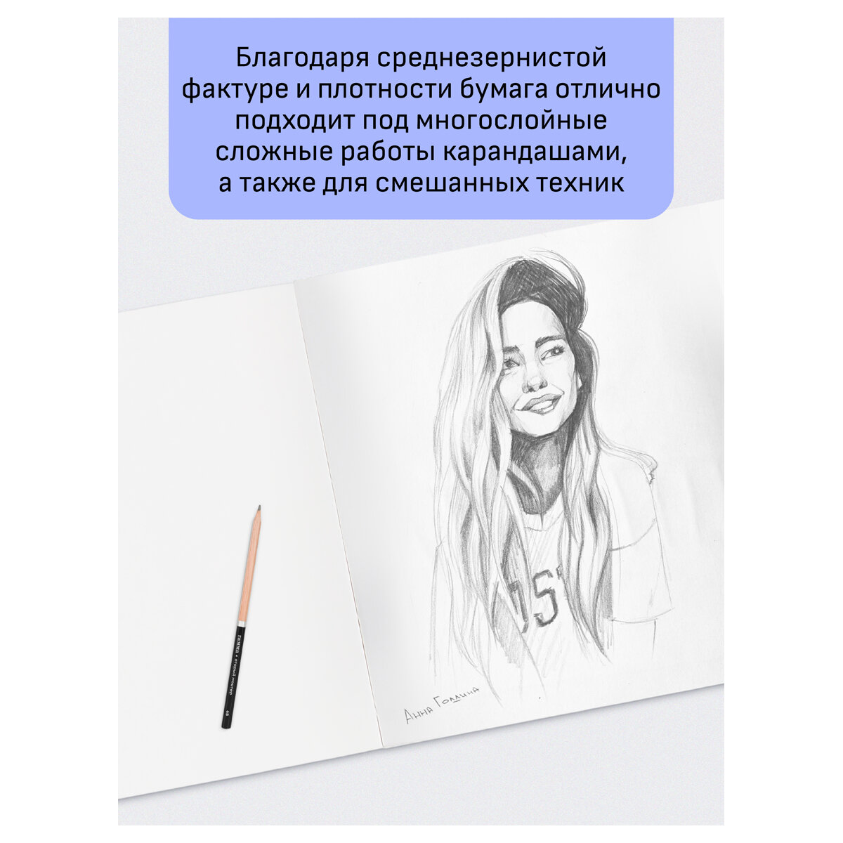 Альбомы Гамма "Студия" предназначен для работ гуашевыми красками, акриловыми, а также темперой. Бумага изготовлена на Гознаке из 100% целлюлозы, плотностью 180 г/м2. Гладкая по обеим сторонам. Обладает высокой степенью адгезии и не требует дополнительной подготовки. Альбомы брошюрованы спиралью по короткой стороне.