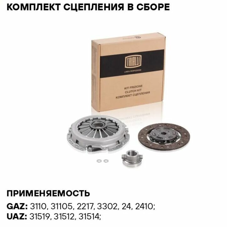 Комплект сцепления в сборе для автомобилей ГАЗ 3110/3302 (змз. 402/406) с муфтой TRIALLI (FR 797)