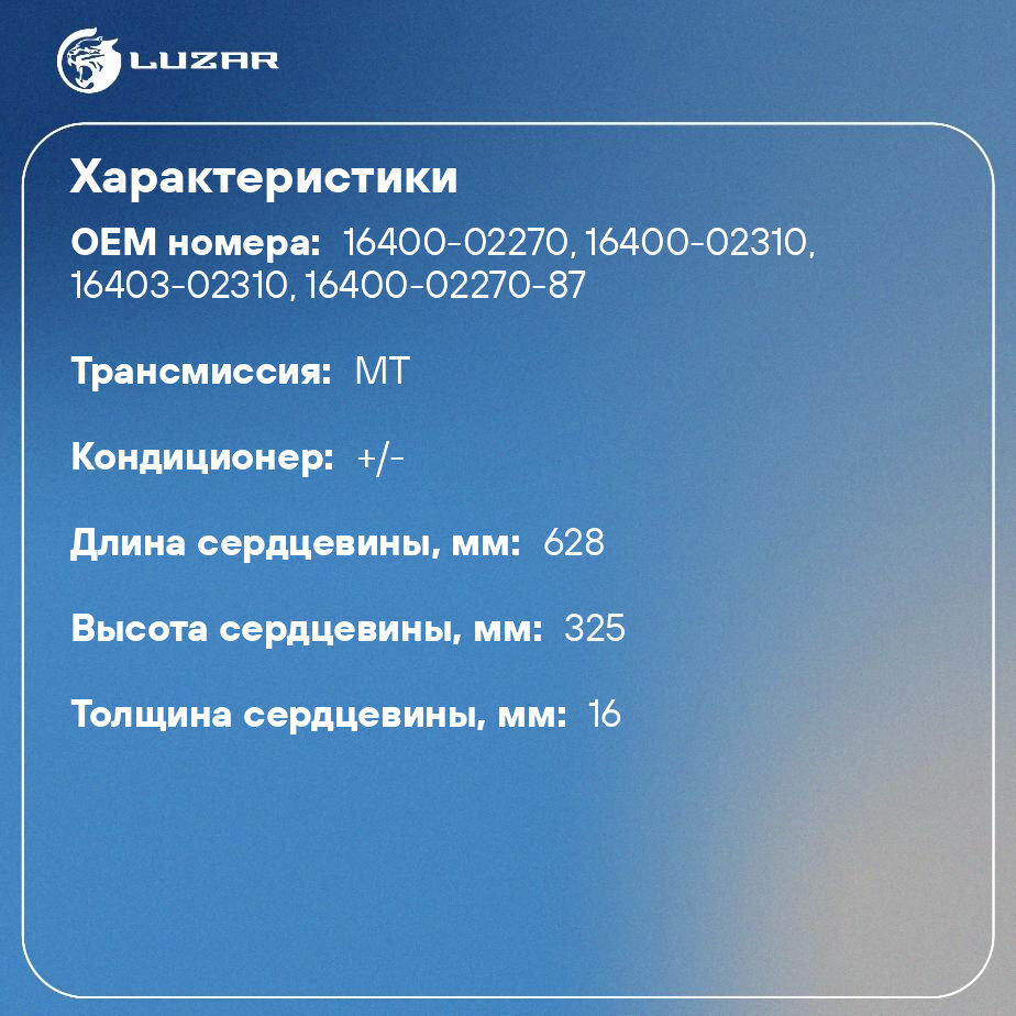 Радиатор охлаждения для автомобилей Avensis (97-)/Corona (97-) 1.6i/1.8i MT LUZAR (LRc 1904)