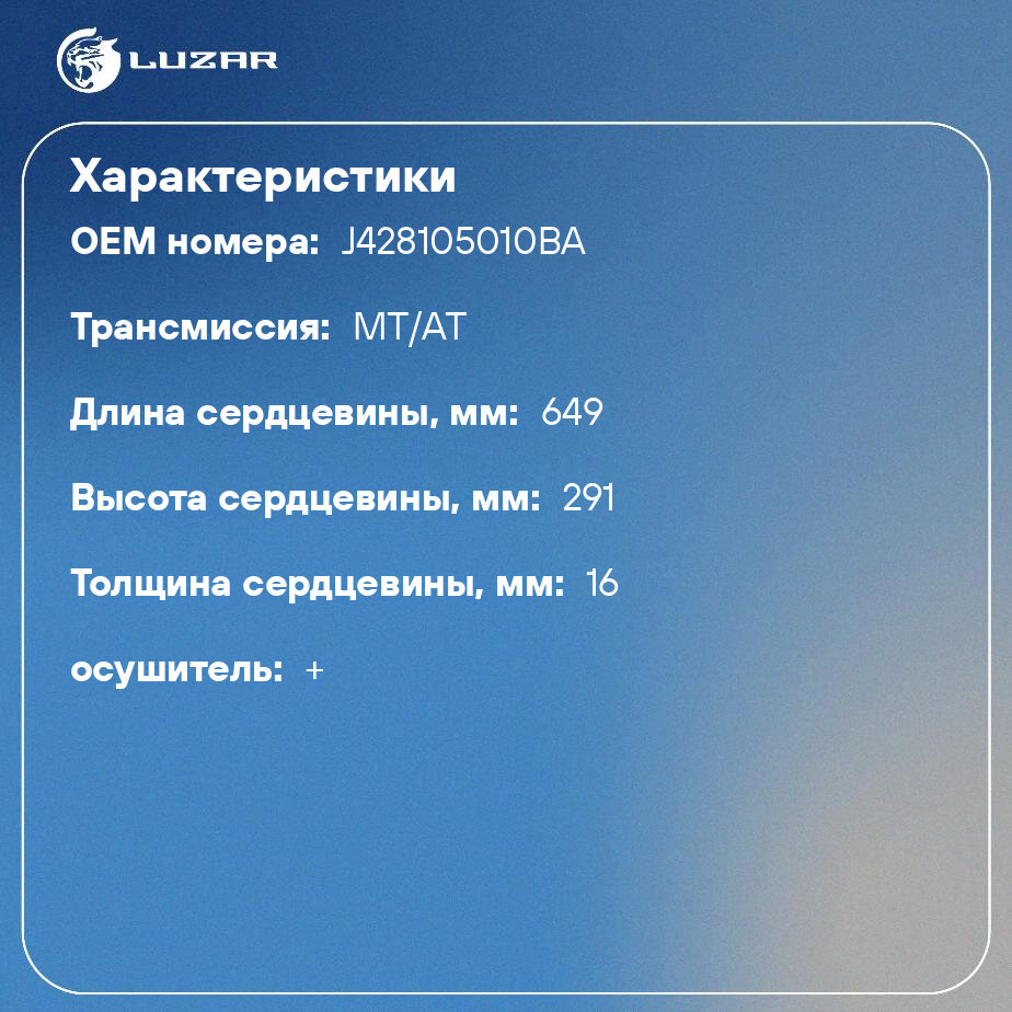 Радиатор кондиционера для автомобилей Tiggo 4 (17-)/7 (16-)/7 Pro (20-) 1.5T LUZAR (LRAC 3037)