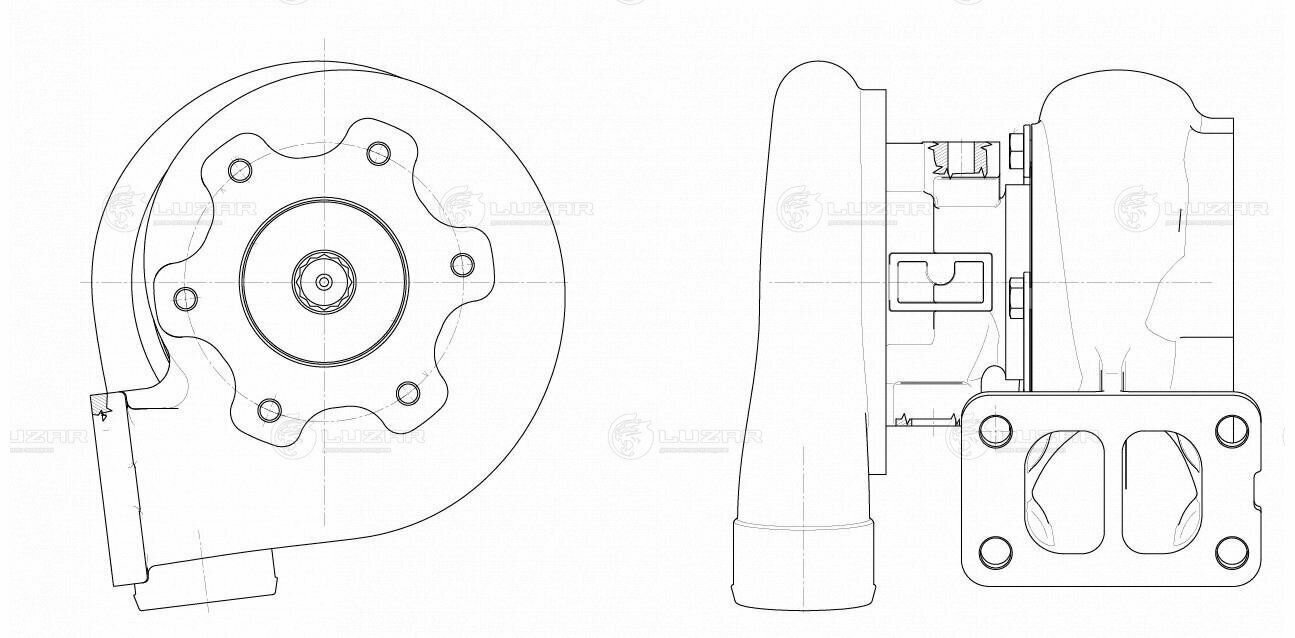 Турбокомпрессор для а/м КАМАЗ 740.60/61/62/63/65 E-3 левый (6 шп.) (тип S2B) LUZAR (LAT 0732)