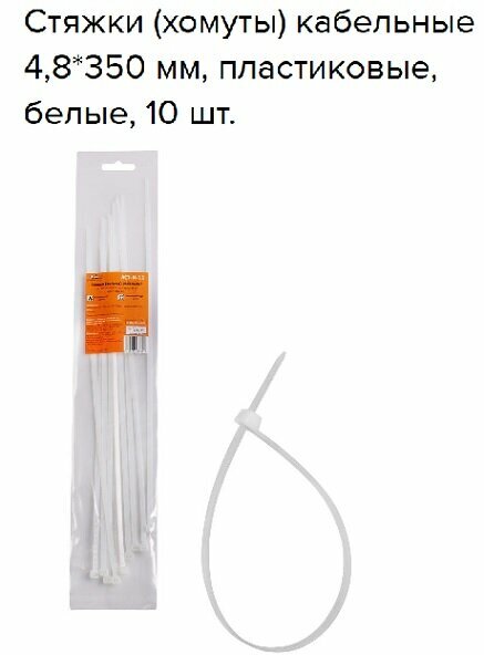Стяжки (хомуты) кабельные 48*350 мм пластиковые белые 10 шт. AIRLINE (ACT-N-11) (размер: 4,8*350мм)