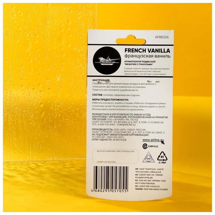 Ароматизатор подвесной "Мешочек с гранулами" французская ваниль AIRLINE (AFME026)