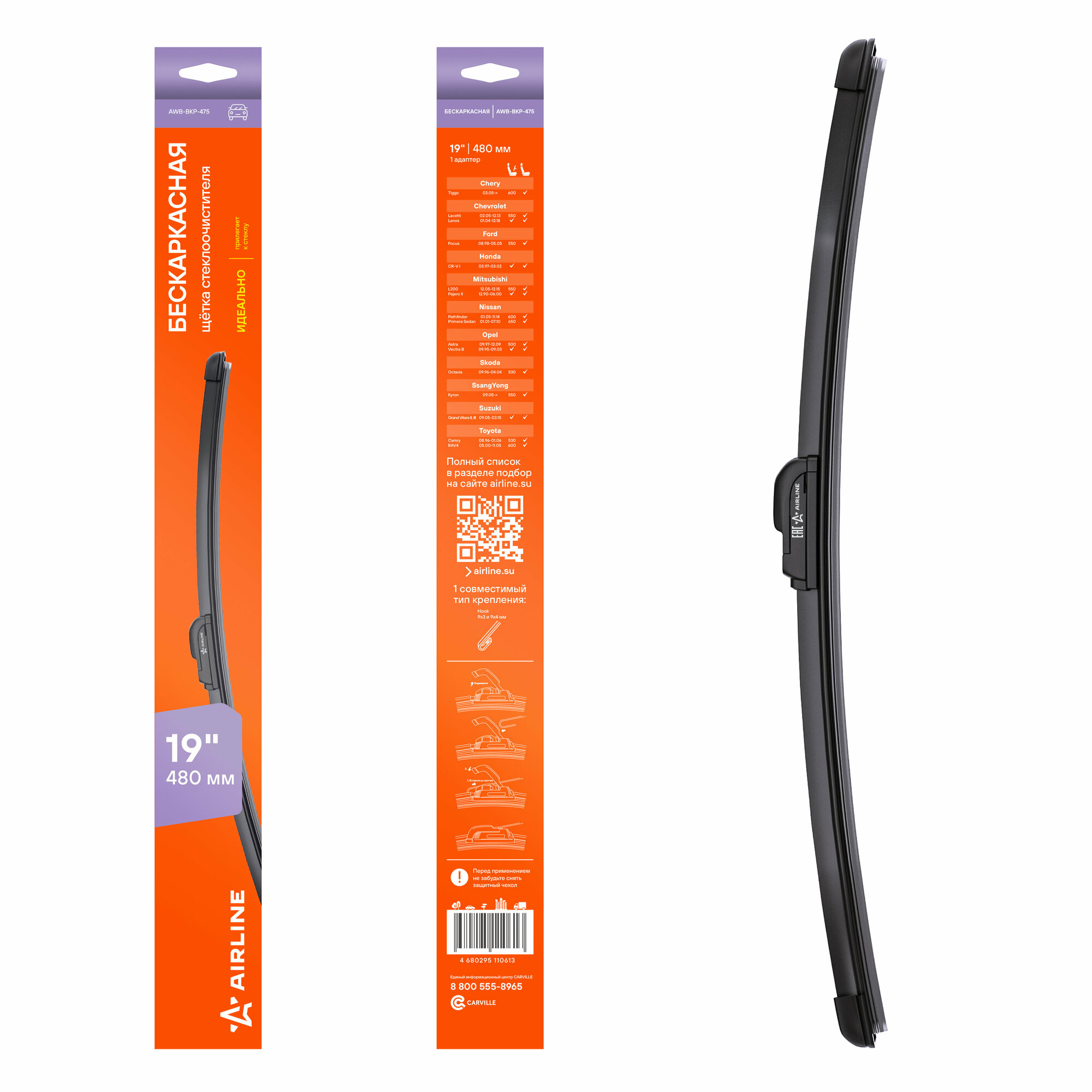 Щетка стеклоочистителя 475мм (19") бескаркасная 1 адаптер (hook 9x3) AIRLINE (AWB-BKP-475) (размер: 19 (475 мм))