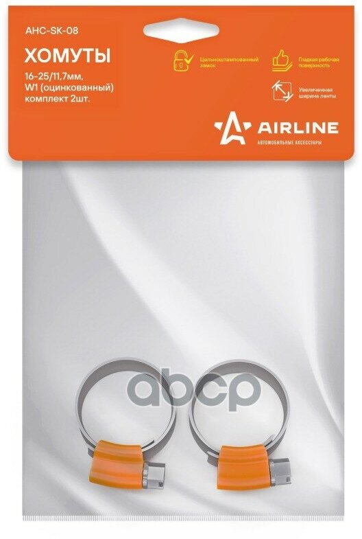 Хомуты 16-25/117 мм червячные усиленные W1 (оцинк.) комплект 2 шт. AIRLINE AHC-SK-08