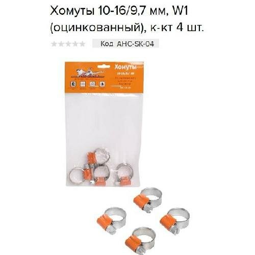 Хомуты 10-16/97 мм червячные усиленные W1 (оцинк.) комплект 4 шт. AIRLINE (AHC-SK-04)