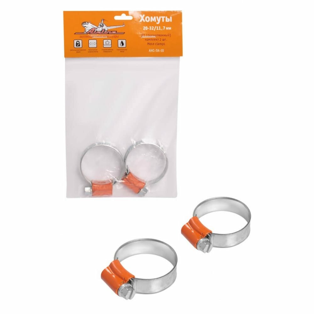Хомуты 20-32/117 мм червячные усиленные W1 (оцинк.) комплект 2 шт. AIRLINE (AHC-SK-10)