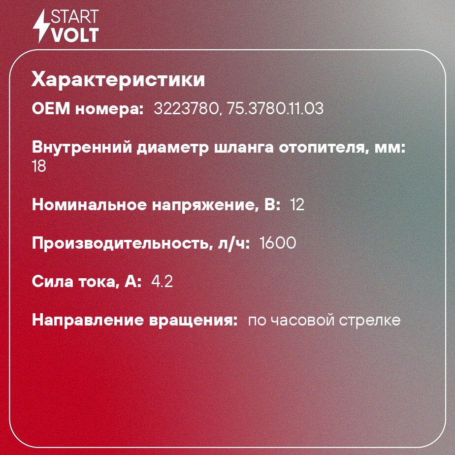 Сервис сравнения цен СкидкаГИД предлагает сравнить цены на товар «Насос отопителя дополнительный электрический (18мм 12В евроразъём) для автомобилей ГАЗ 3221/2217 StartVolt (VPM 0322)»