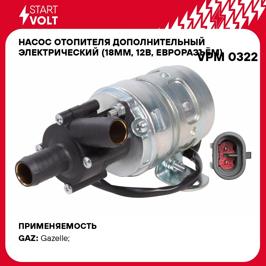Насос отопителя дополнительный электрический (18мм 12В евроразъём) для автомобилей ГАЗ 3221/2217 StartVolt (VPM 0322)