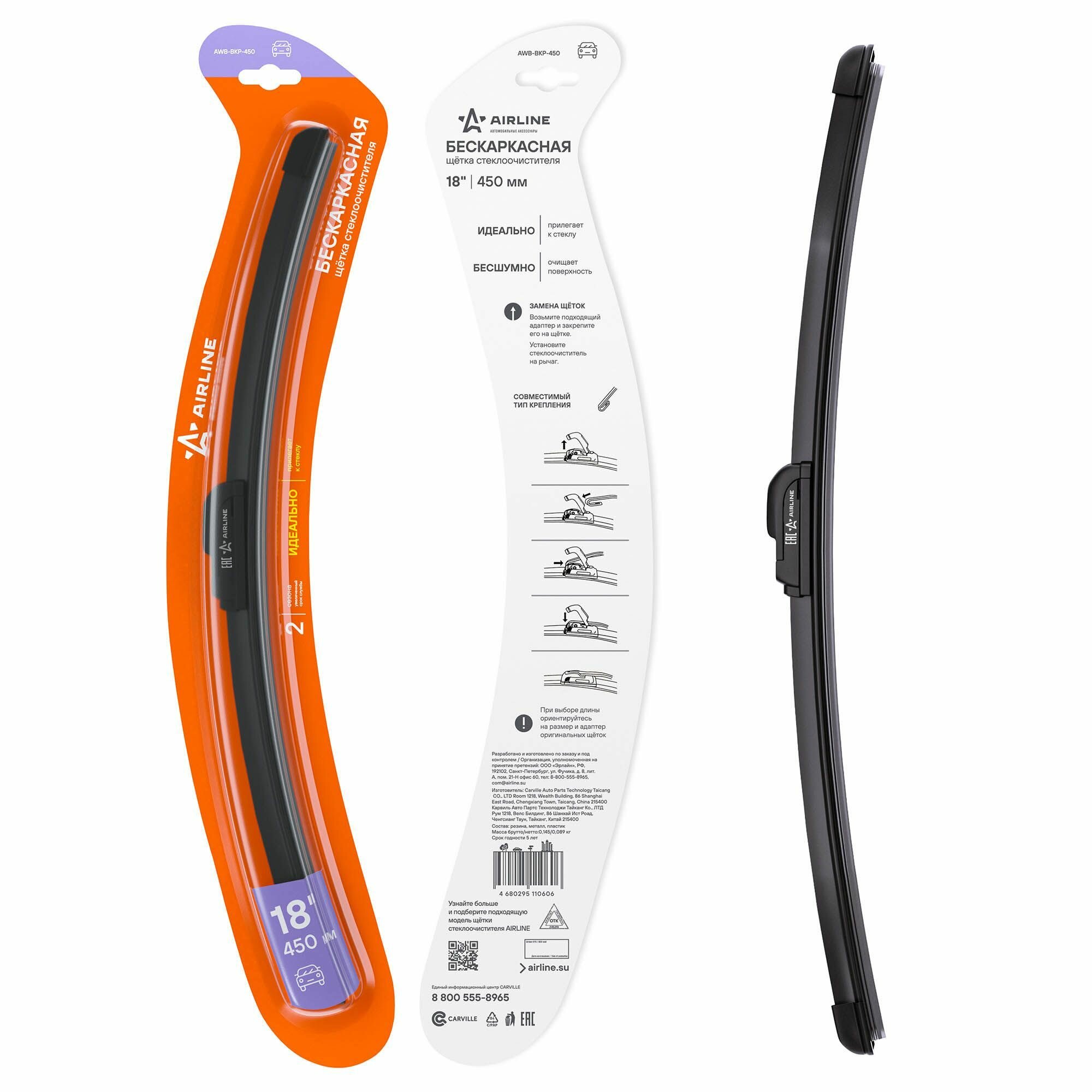 Щетка стеклоочистителя 450мм (18") бескаркасная 1 адаптер (hook 9x3) AIRLINE (AWB-BKP-450) (размер: 18 (450 мм))