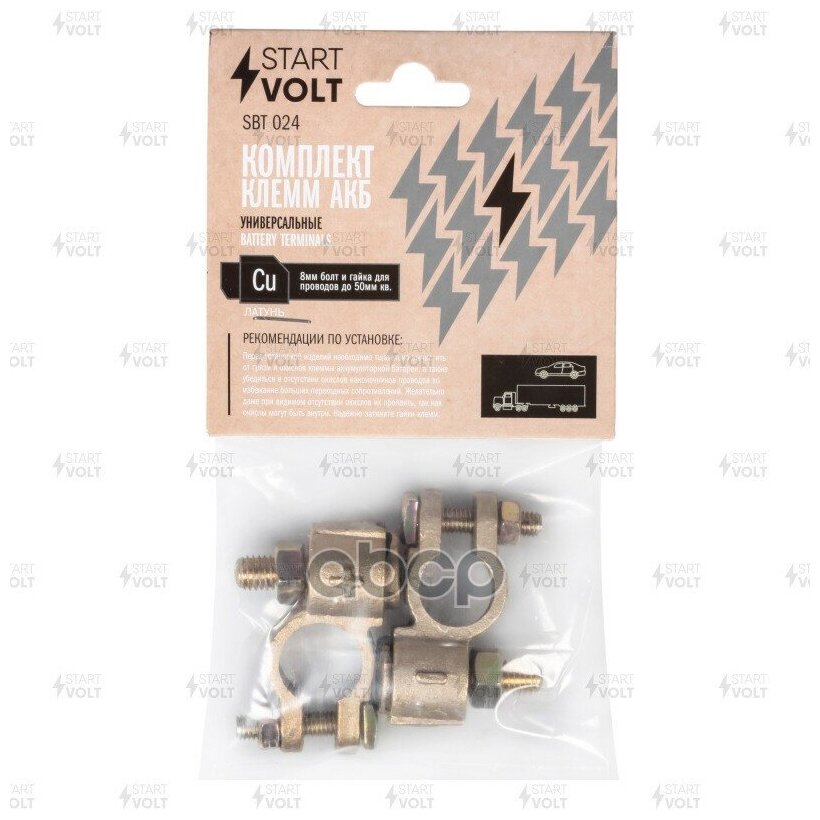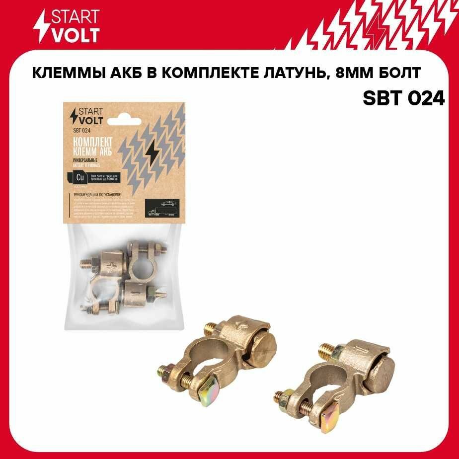 Клеммы АКБ в комплекте латунь 8мм болт и гайка для проводов до 50мм кв. StartVolt SBT 024