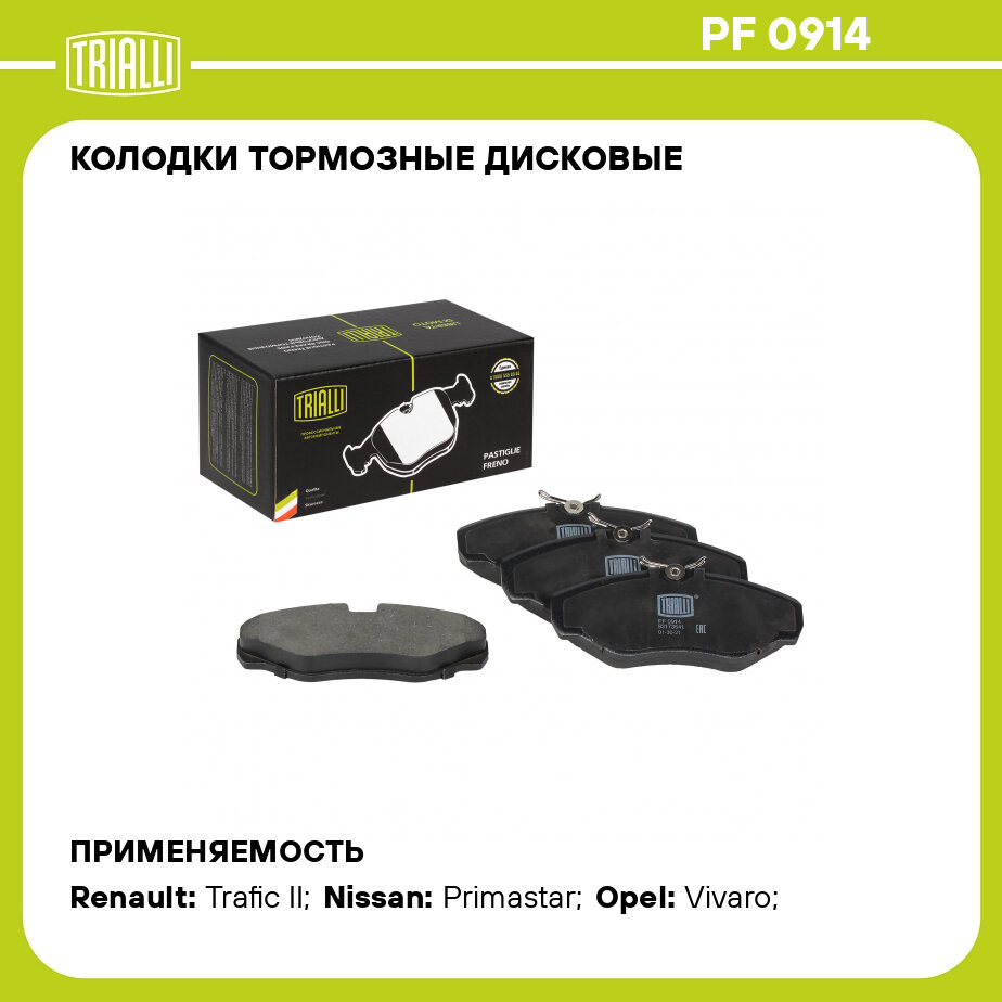 Колодки тормозные для автомобилей Renault Trafic II (01-) / Opel Vivaro A (01-) дисковые передние TRIALLI (PF 0914)