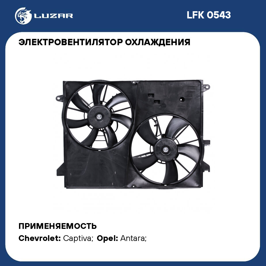 Электровентилятор охлаждения для автомобилей Captiva (06-)/Antara (07-) (2 вент.) (с кожухом) LUZAR (LFK 0543)