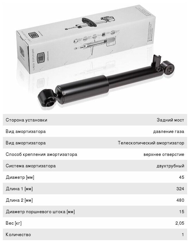 | Вид амортизатора | Масляный с газовым подпором низкого давления |