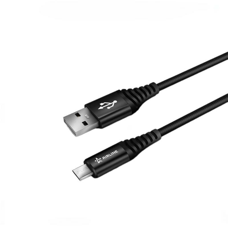 Кабель USB - micro USB 1м черный нейлоновый AIRLINE ACH-M-23