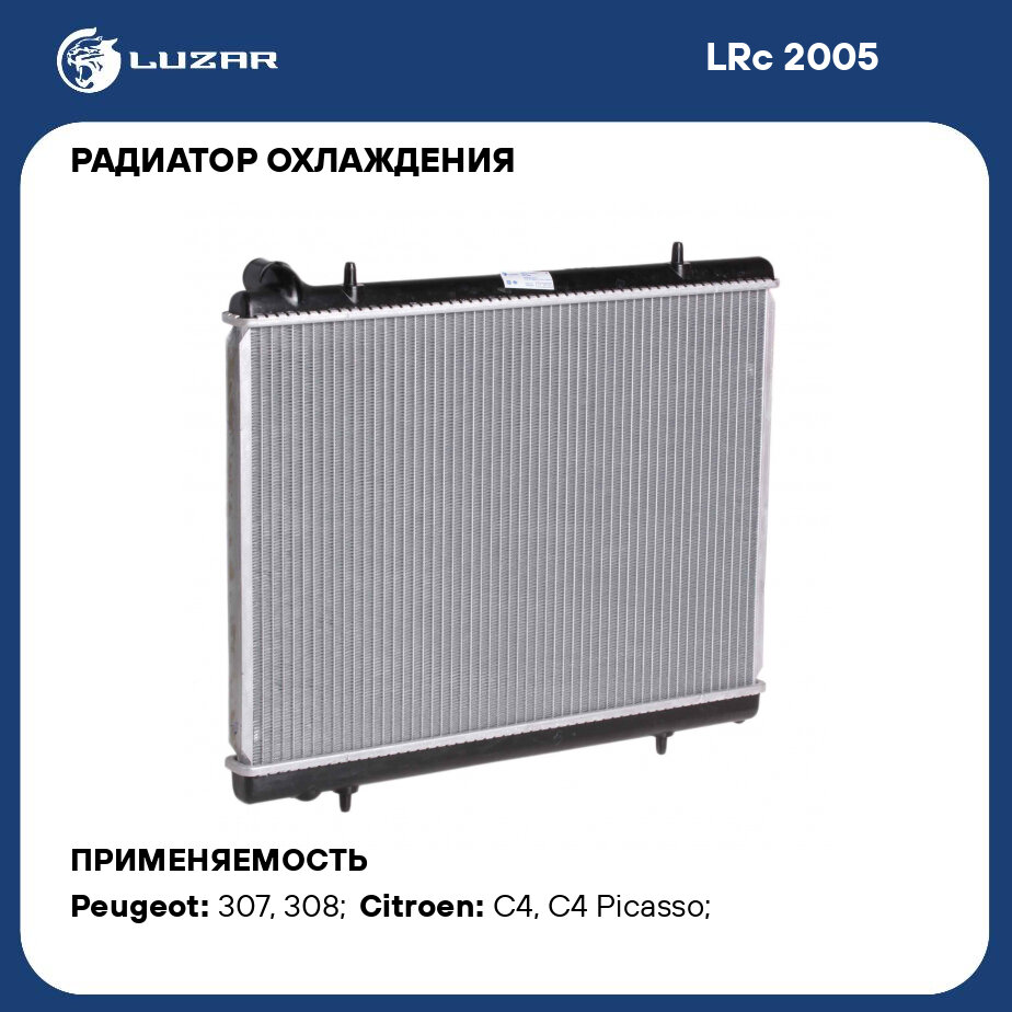 Радиатор охлаждения для автомобилей Peugeot 307 (00-)/308(07-)/Citroen C4 (04-) 1.6HDi/2.0i LUZAR (LRc 2005)