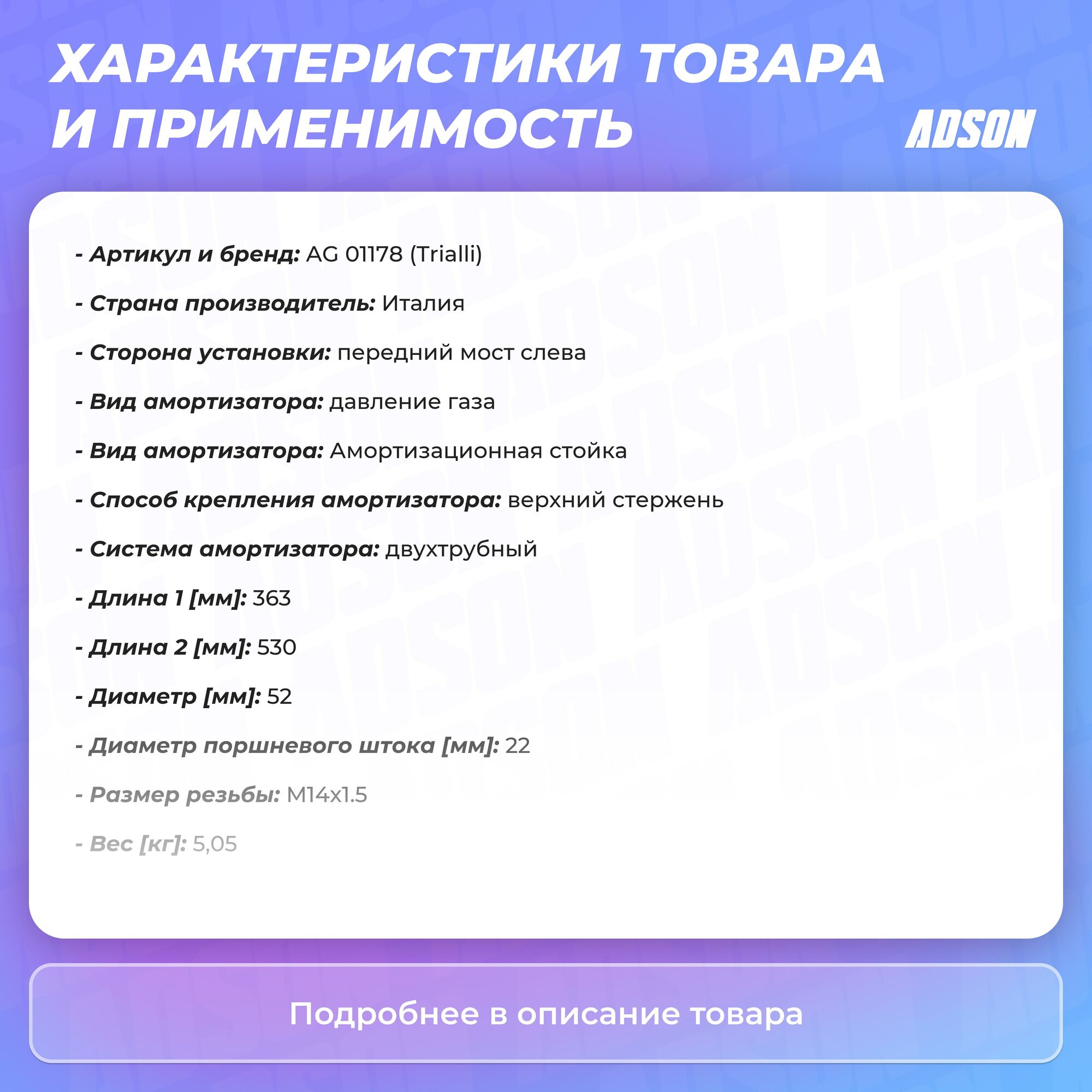 Тип товара: Амортизаторы