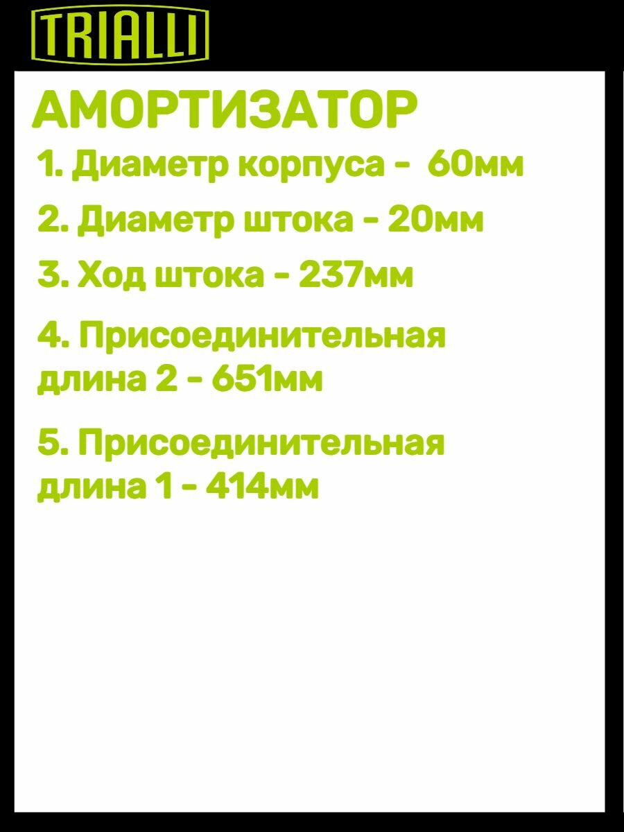 Амортизатор TRIALLI AH 06001 для ZIL 5301 играет ключевую роль в обеспечении комфорта и безопасности во время движения: гасит колебания кузова и предотвращает его раскачку на неровностях, что улучшает управляемость и стабильность автомобиля.Преимущества амортизаторов подвески TRIALLI:Многоуровневая система обработки штока, что повышает его износостойкость.Хромированное покрытие для защиты от коррозии и увеличения срока службы.Многокромочное сальниковое уплотнение, обеспечивающее надежную герметизацию.Полностью автоматизированная сборка поршня для высокой точности.Специальное масло высокой степени очистки с комплексом присадок для оптимальной работы в любых условиях.Соответствие международным стандартам обеспечивает высокое качество.TRIALLI — это российская инженерно-маркетинговая компания, специализирующаяся на производстве автокомпонентов для легковых и грузовых автомобилей. С момента своего основания в 2005 году компания ставит перед собой цель повысить надежность автозапчастей, ориентируясь на качество, доступность и доверие потребителей. Продукция TRIALLI соответствует международным стандартам и регулярно проходит контроль в собственной лаборатории.Для достижения максимальной эффективности амортизатора TRIALLI AH 06001 рекомендуется регулярно проверять его состояние и заменять при первых признаках износа или утечки масла.
