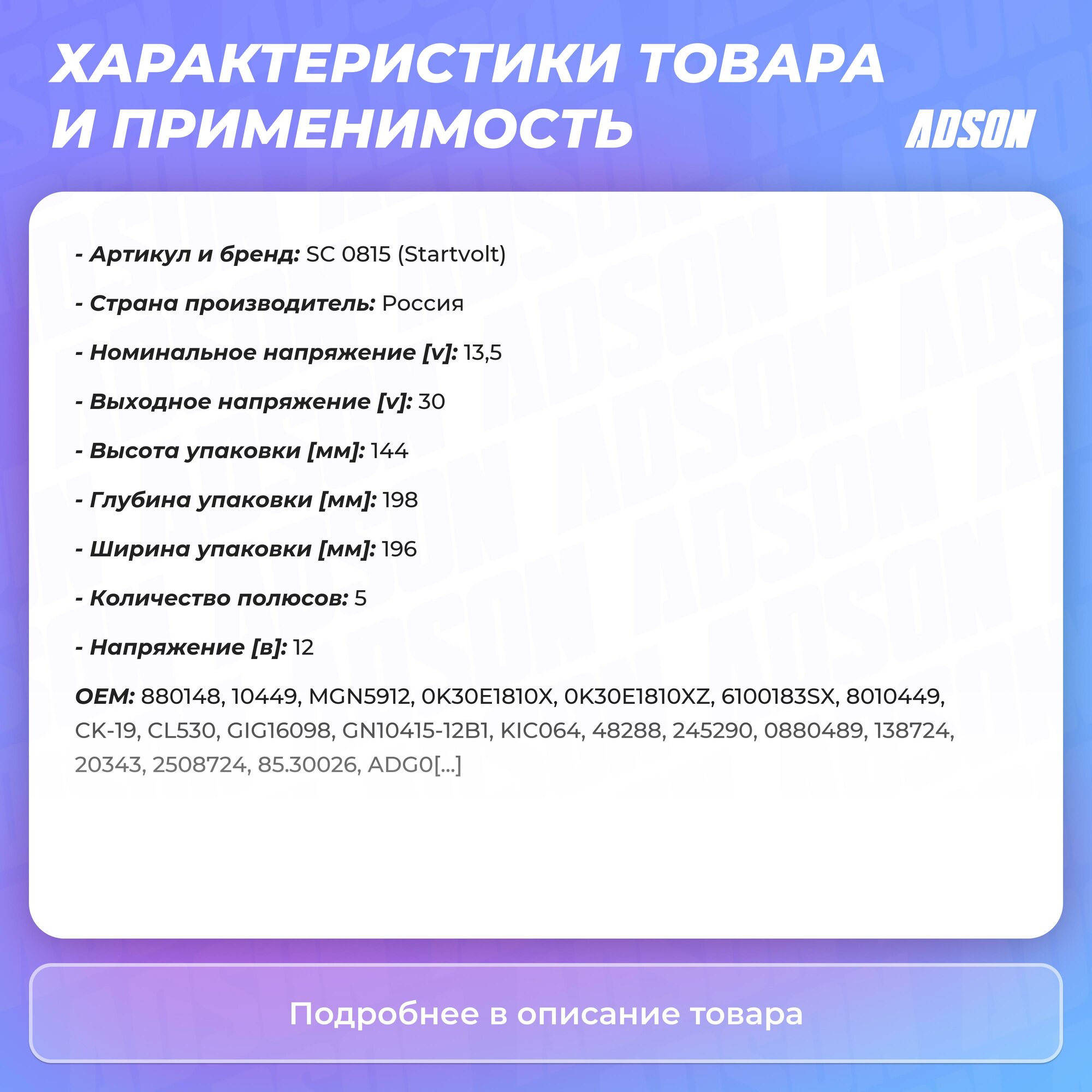 Внимание ! Цена указывается за 1 единицу товара!Вы Смотрите :Номер товара : SC0815 Производитель : STARTVOLT Название товара : Катушка зажигания Доступно для заказа : 14 Минимальное количество для заказа : 1 - заказывать кратно данному числу !Внимание!Делаем отправку заказа максимум через 2 дня после заказа, в зависимости от дня недели.Цена указана за 1шт, если указывается кол-во в лоте 10, то нужно заказывать 10шт, по 1шт данный товар не отправляемНапример:Cвечи продаются по 4шт(6,8,12) минимум и кратно 4шт(6,8,12)Втулки стабилизатора (которые одинаковые) по 2шт минимум и кратно 2шт, за исключением когда втулка идет на одну из сторон, то есть правая или левая!Пружины продаются по 2шт!