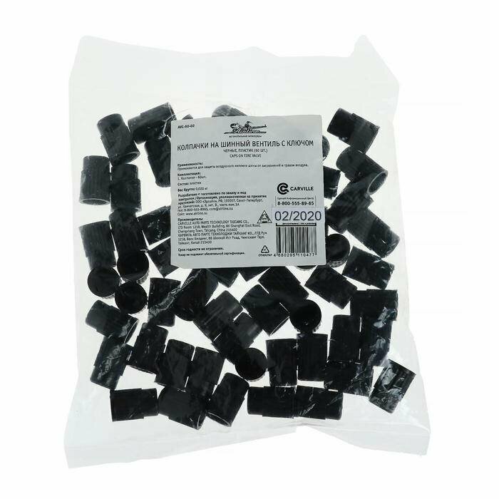 Колпачки на шинный вентиль черные пластик (60 шт.) AIRLINE (AVC-60-02)