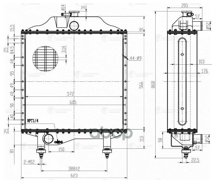 | Тип сердцевины | паяная, 5-ти рядная |