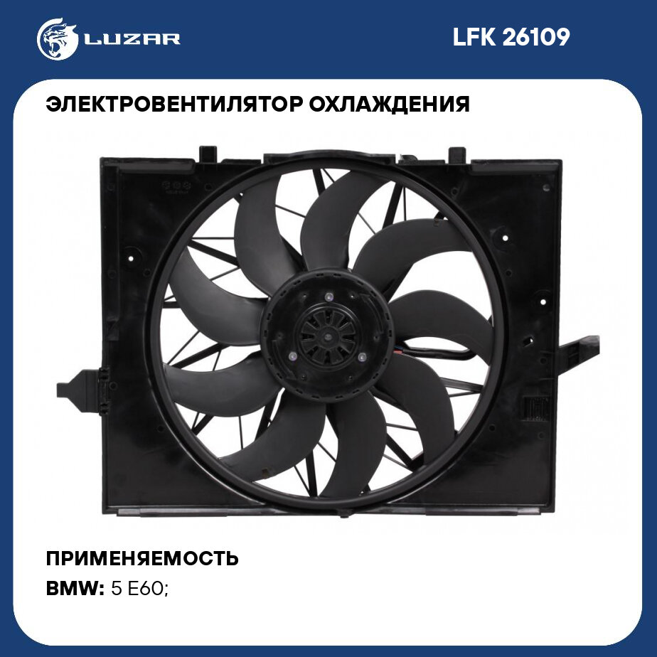 Электровентилятор охлаждения для автомобилей 5 (E60) (03-) (с кожухом) LUZAR (LFK 26109)