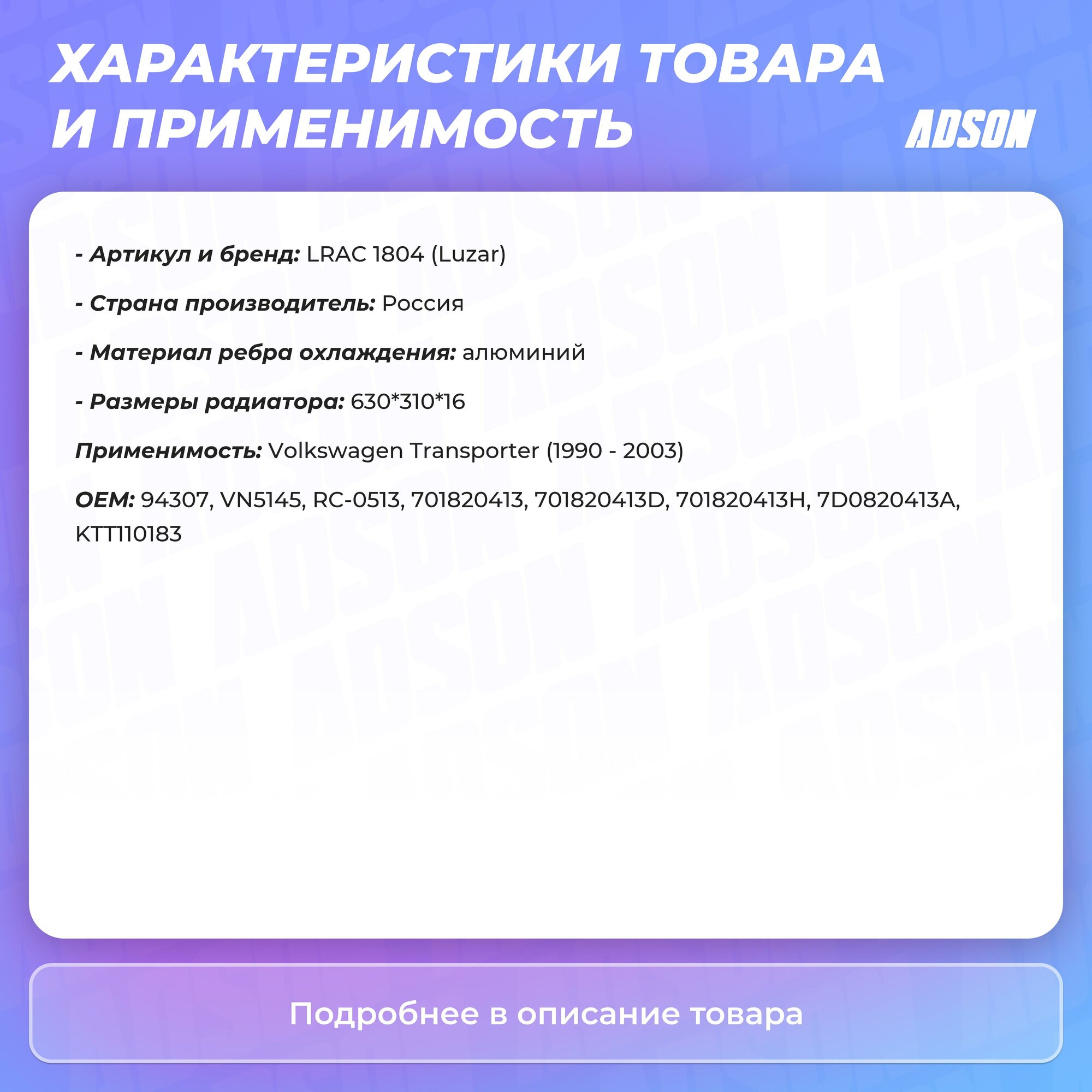 Сервис сравнения цен СкидкаГИД предлагает сравнить цены на товар «Радиатор кондиционера для автомобилей Transporter T4 (90-) LUZAR (LRAC 1804)»
