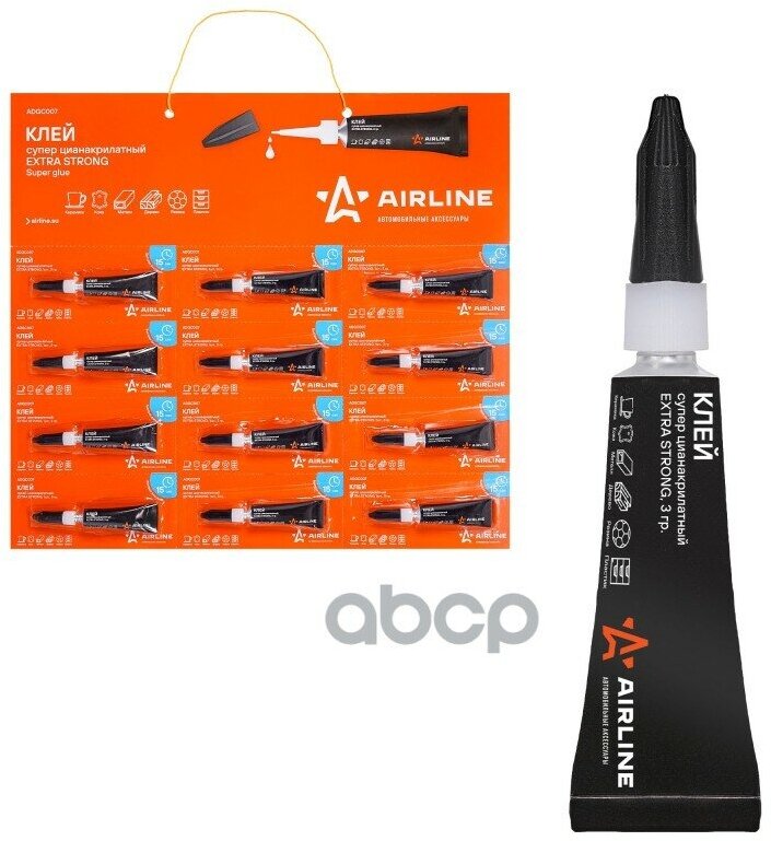 Клей супер цианакрилатный EXTRA STRONG 1 шт. 3 гр. блистеры на подложке AIRLINE (ADGC007)