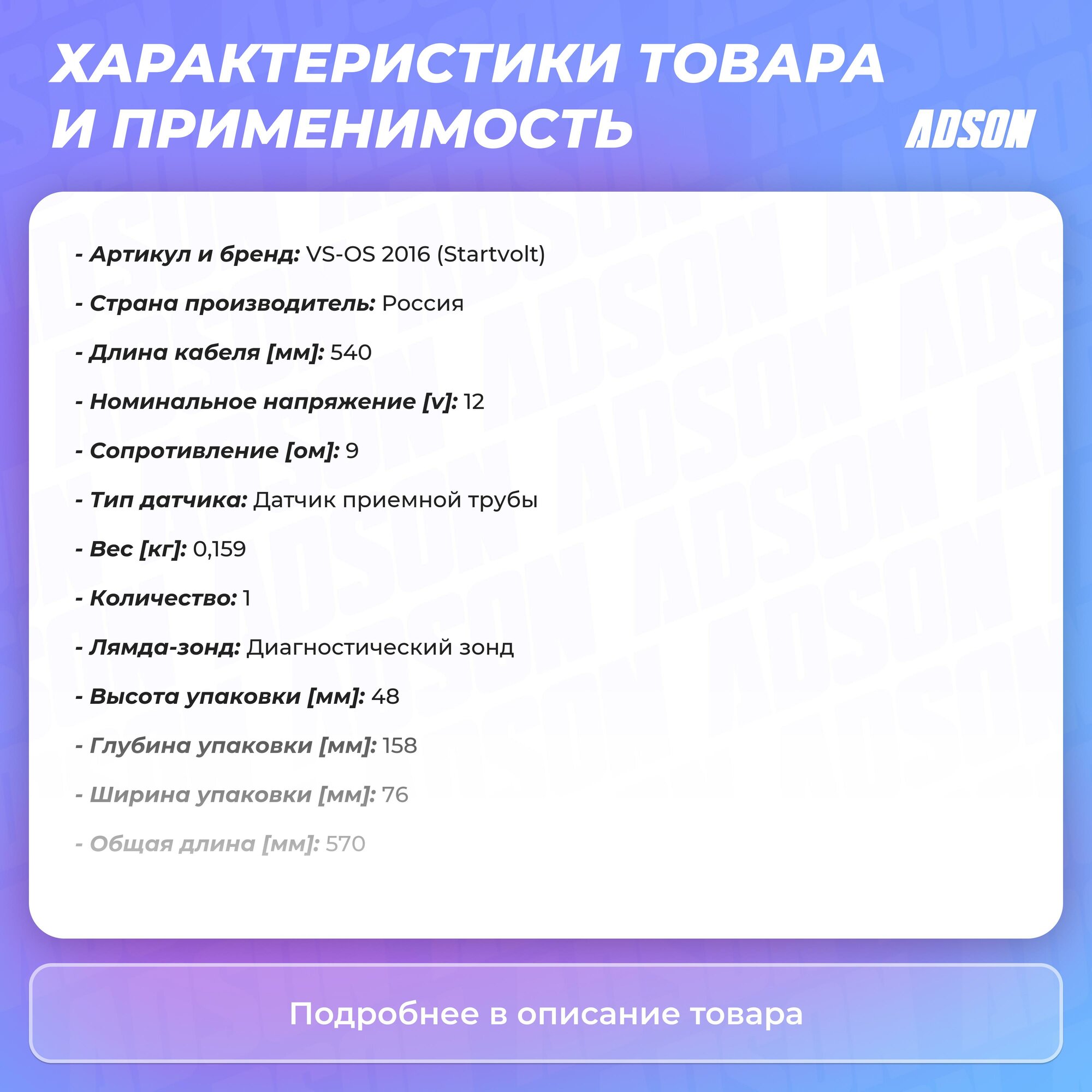 Тип товара: Датчики кислорода (лямбда-зонды)
