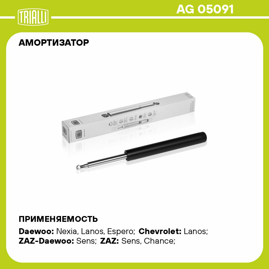 Амортизатор TRIALLI AG 05091 для Daewoo Nexia 95˃ играет ключевую роль в обеспечении комфорта и безопасности во время движения: гасит колебания кузова и предотвращает его раскачку на неровностях, что улучшает управляемость и стабильность автомобиля.Преимущества амортизаторов подвески TRIALLI:Многоуровневая система обработки штока, что повышает его износостойкость.Хромированное покрытие для защиты от коррозии и увеличения срока службы.Многокромочное сальниковое уплотнение, обеспечивающее надежную герметизацию.Полностью автоматизированная сборка поршня для высокой точности.Специальное масло высокой степени очистки с комплексом присадок для оптимальной работы в любых условиях.Соответствие международным стандартам обеспечивает высокое качество.TRIALLI — это российская инженерно-маркетинговая компания, специализирующаяся на производстве автокомпонентов для легковых и грузовых автомобилей. С момента своего основания в 2005 году компания ставит перед собой цель повысить надежность автозапчастей, ориентируясь на качество, доступность и доверие потребителей. Продукция TRIALLI соответствует международным стандартам и регулярно проходит контроль в собственной лаборатории.Для достижения максимальной эффективности амортизатора TRIALLI AG 05091 рекомендуется регулярно проверять его состояние и заменять при первых признаках износа или утечки масла.