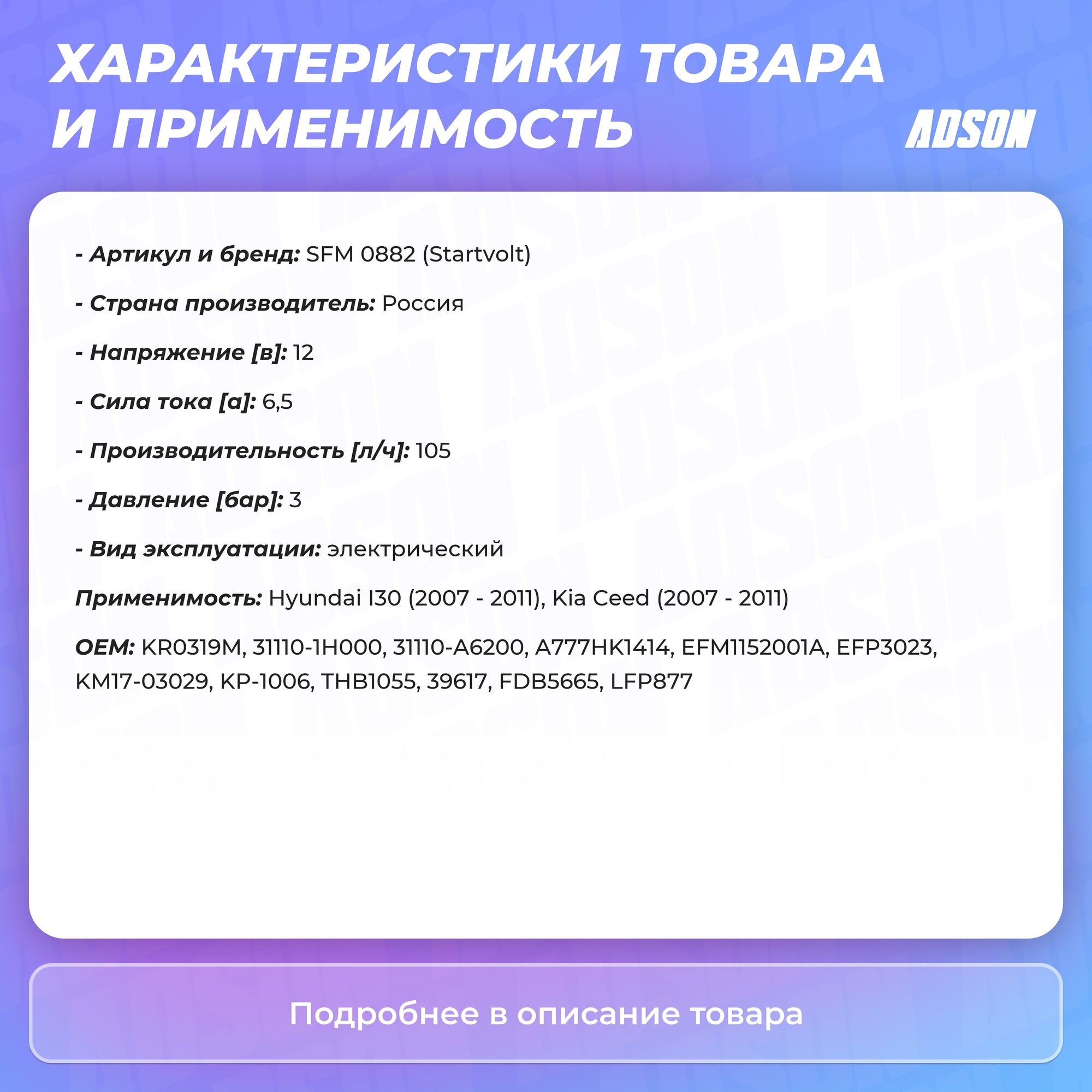 Модуль топливного насоса для автомобилей KIA/Hyundai Ceed (07-)/i30 (07-) 1.6i StartVolt (SFM 0882)