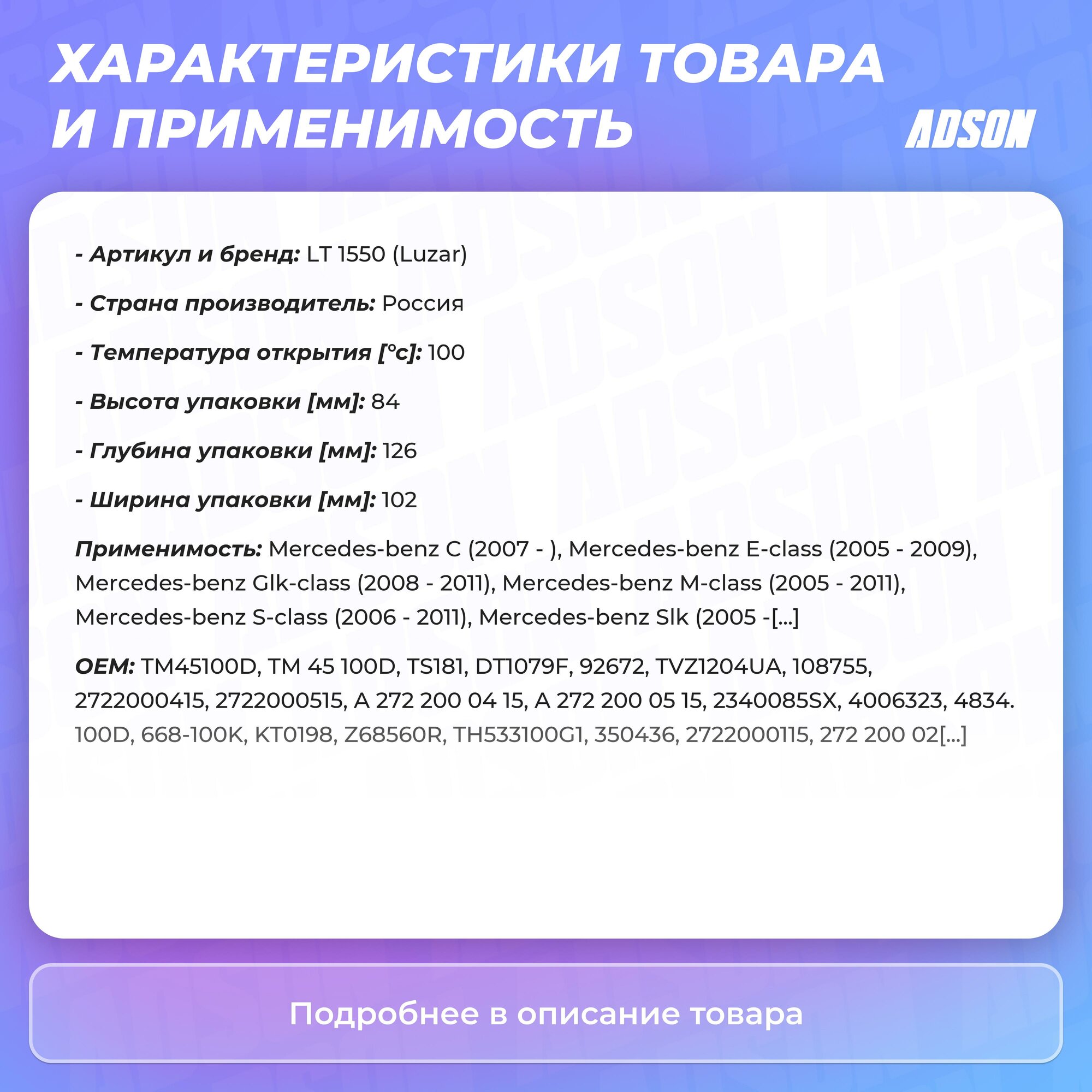 ![LUZAR Термостат для автомобилей Mercedes Benz C (W204) (07-)/E (W212) (09-) [M272] (с алюм. корпусом) LUZAR](https://cdn.xn--80agbcqdjc3d.xn--p1ai/images/prodacts/290/0/0.jpg)