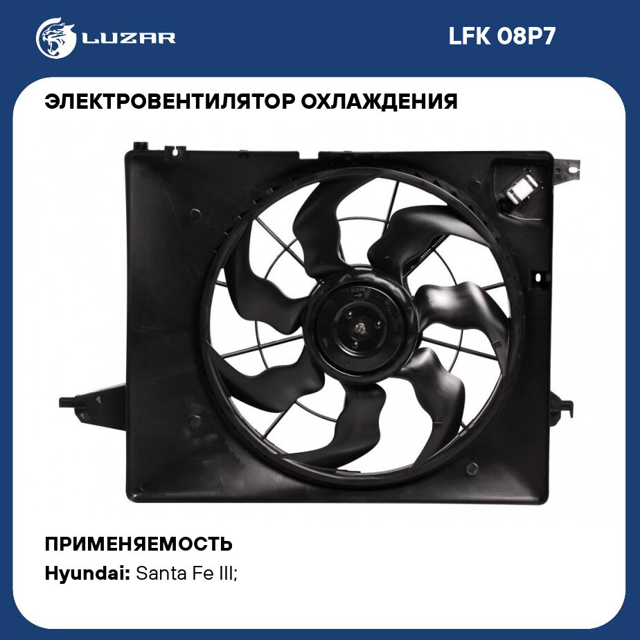Электровентилятор охлаждения для автомобилей Santa Fe III (12-) 2.4i (с кожухом и резист.) LUZAR (LFK 08P7)