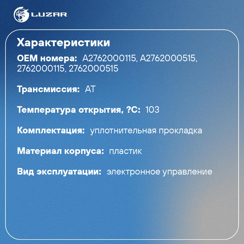 ![Термостат для автомобилей Mercedes-Benz E (W212) (09-)/S (W221) (05-) 3.5i [M276] (с корпусом) LUZAR (LT 15276)](https://cdn.xn--80agbcqdjc3d.xn--p1ai/images/prodacts/290/106162/106162664_termostat-dlya-avtomobiley-mercedes-benz-e-w212-09-s-w221-05-3-5i-m276-korpusom-luzar-lt-15276.jpg)