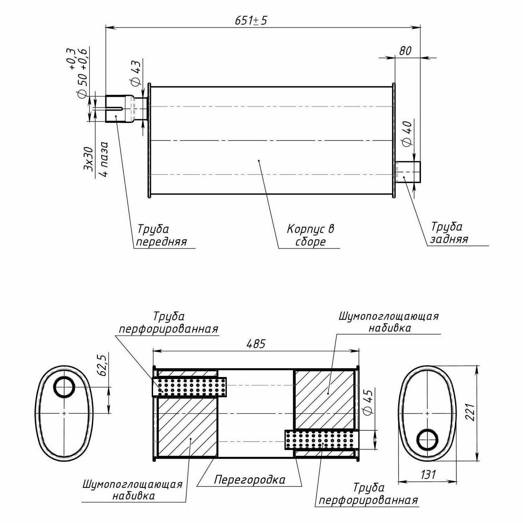 Глушитель для автомобилей ПАЗ 3205 основной (алюминизированная сталь) TRIALLI (EMM 0372)