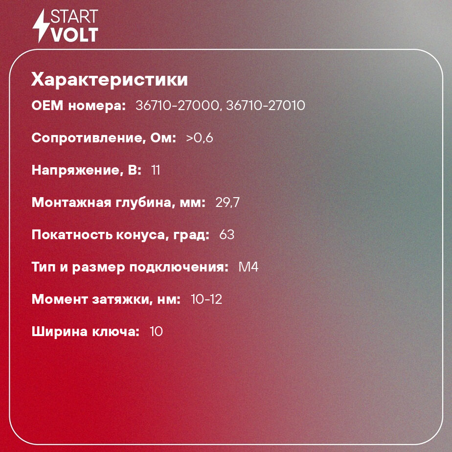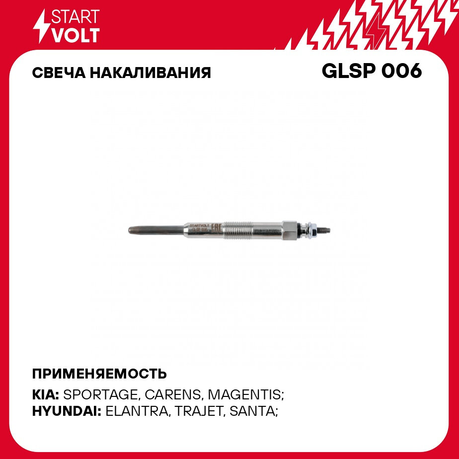 Свеча накаливания для автомобилей Hyundai/KIA Santa FE (01-)/Tucson (04-)/Sportage II (04-) 2.0D StartVolt (GLSP 006)