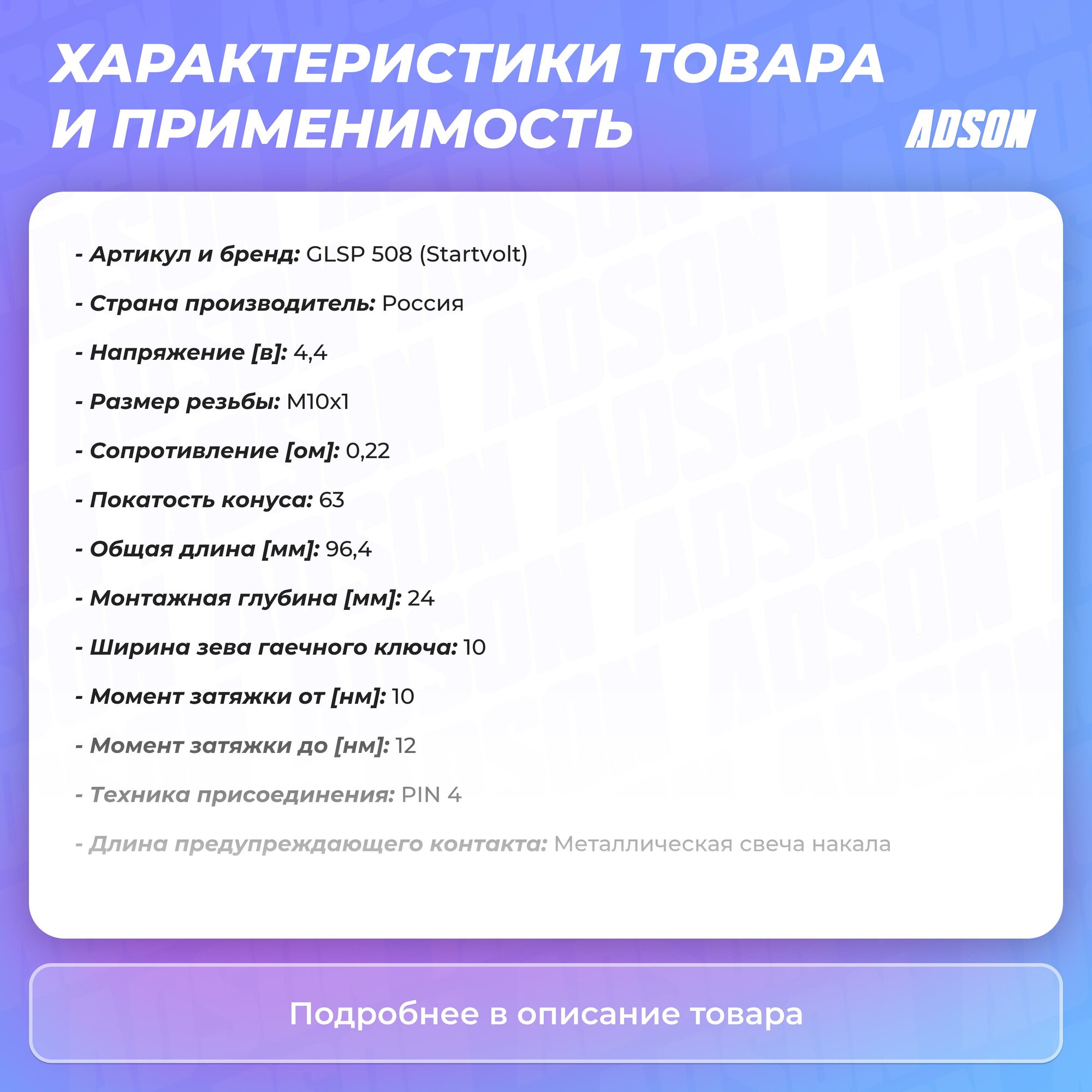 Внимание ! Цена указывается за 1 единицу товара!Вы Смотрите :Номер товара : GLSP508 Производитель : STARTVOLT Название товара : Свечи накаливания (кмпл. 4шт) для а м Renault Duster (10-) 1.5dCi (GLSP 508) Доступно для заказа : 0 Минимальное количество для заказа : 1 - заказывать кратно данному числу !Внимание!Делаем отправку заказа максимум через 2 дня после заказа, в зависимости от дня недели.Цена указана за 1шт, если указывается кол-во в лоте 10, то нужно заказывать 10шт, по 1шт данный товар не отправляемНапример:Cвечи продаются по 4шт(6,8,12) минимум и кратно 4шт(6,8,12)Втулки стабилизатора (которые одинаковые) по 2шт минимум и кратно 2шт, за исключением когда втулка идет на одну из сторон, то есть правая или левая!Пружины продаются по 2шт!