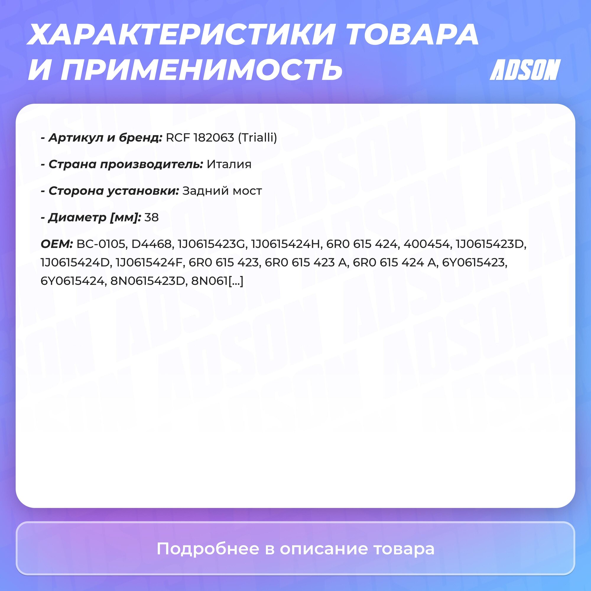 Сервис сравнения цен СкидкаГИД предлагает сравнить цены на товар «Ремкомплект заднего суппорта для автомобилей VW Polo Sedan (RUS) (10-) 1ZC d=38mm TRIALLI (RCF 182063)»