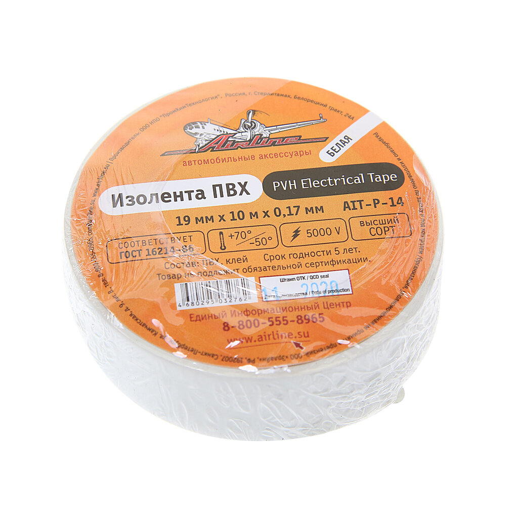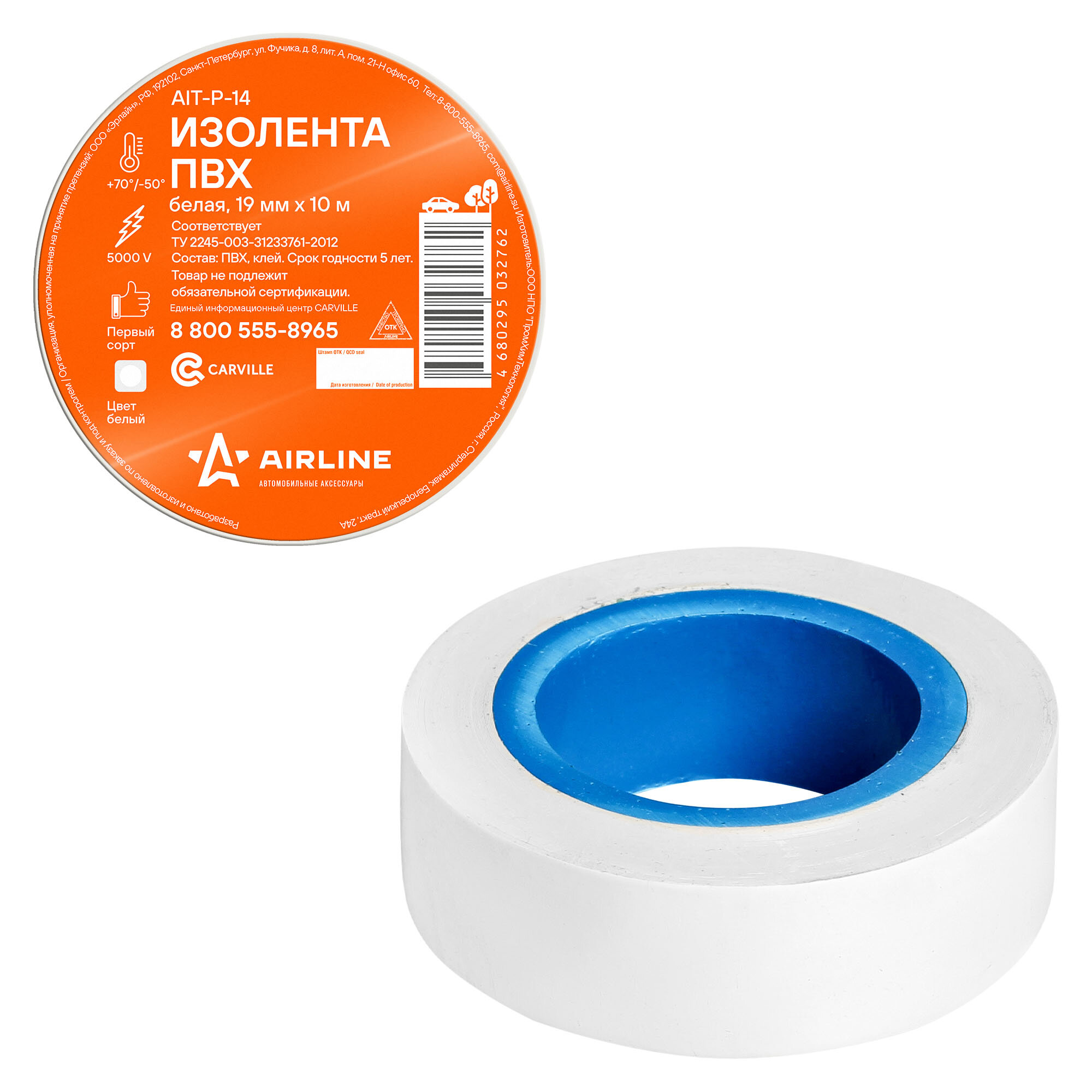 Изолента ПВХ белая 19 мм*10 м AIRLINE (AIT-P-14) (размер: 19мм*10м)