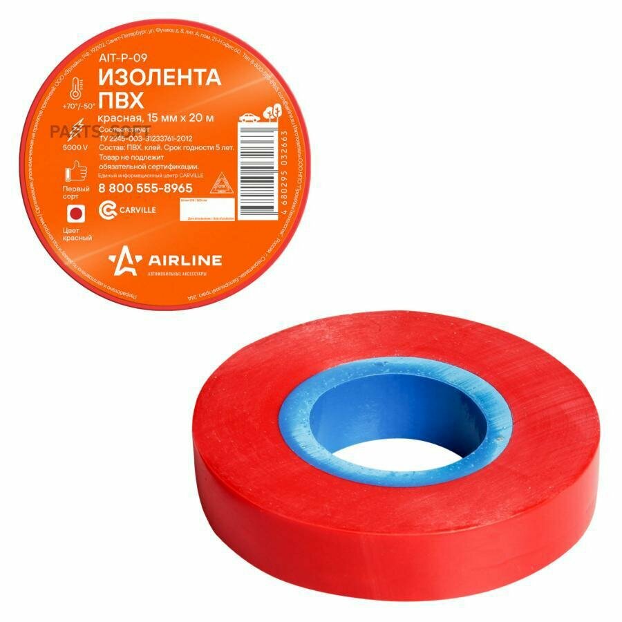 Изолента ПВХ красная 15 мм*20 м AIRLINE (AIT-P-09) (размер: 15мм*20м)