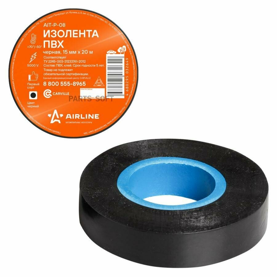 Изолента ПВХ черная 15 мм*20 м AIRLINE (AIT-P-08) (размер: 15мм*20м)