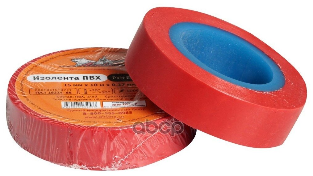 Изоляционная лента ПВХ, которая представлена в широком ассортименте, различается по цветам, ширине ленты и длине намотки. Изолента представляет собой расходный материал, предназначенный для обмотки проводов и кабелей с целью их электроизоляции.Изолента AIRLINE изготавливается из поливинилхлоридной пленки с нанесённым на неё клеевым слоем и полностью соответствует ГОСТу-16214-86.Преимущества:- соответствует ГОСТу; - высший сорт;- высокая сила адгезии