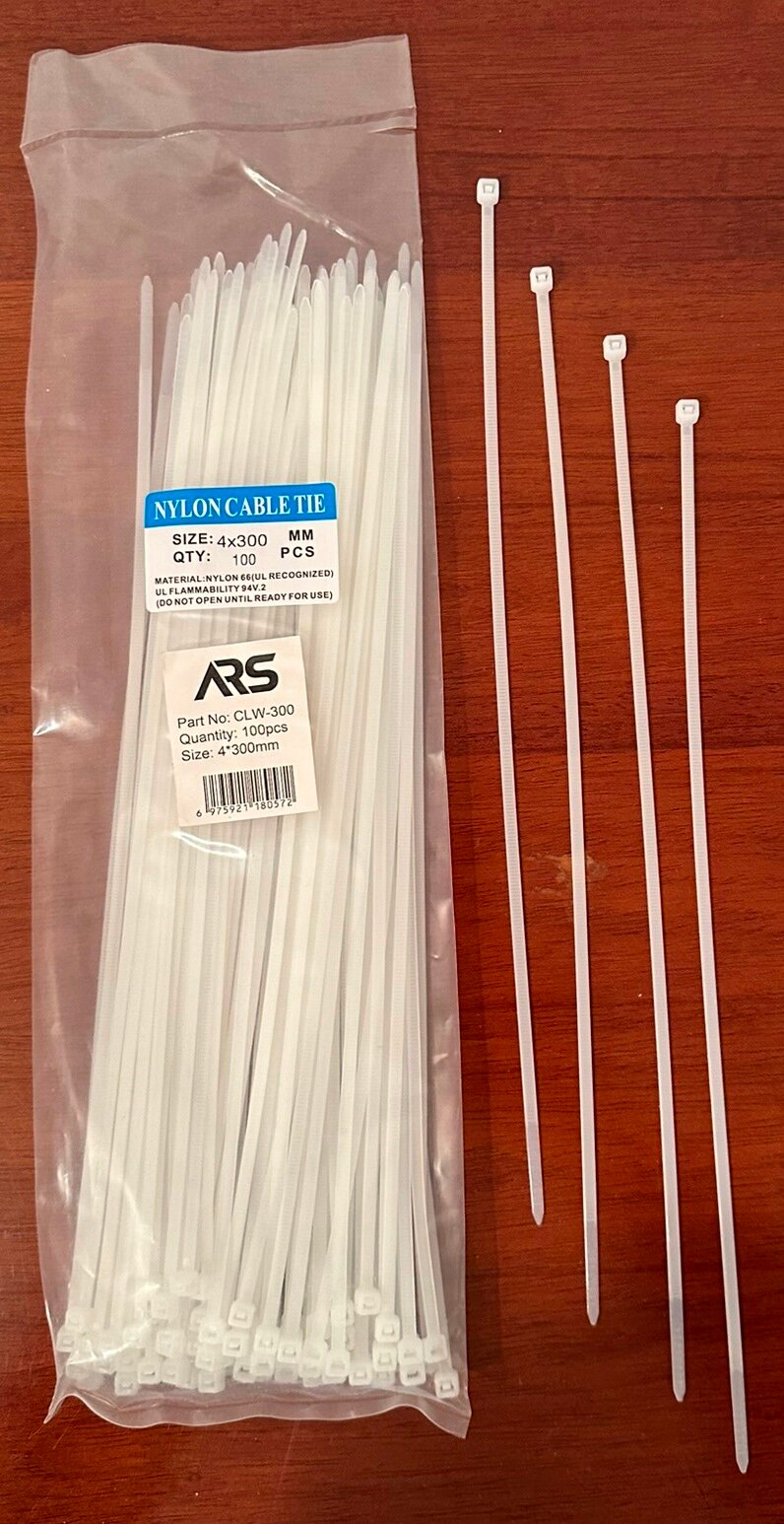 Стяжки (хомуты) кабельные 36*300 мм пластиковые белые 100 шт. AIRLINE ACT-N-10 (размер: 3,6*300 мм)