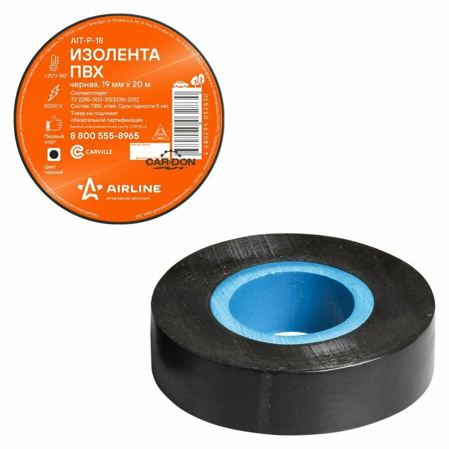 Изолента ПВХ черная 19 мм*20 м AIRLINE (AIT-P-18) (размер: 19мм*20м)