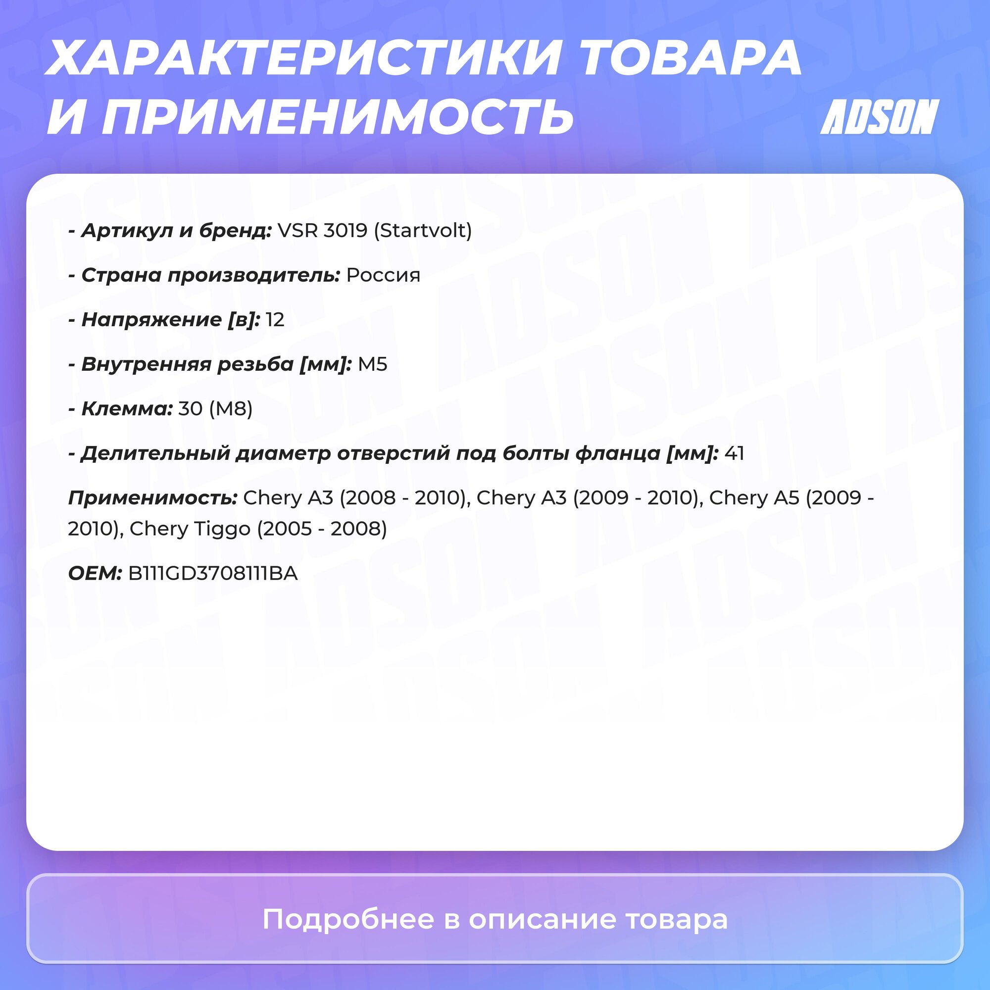 Тип товара: Авто/Запчасти/Электрика