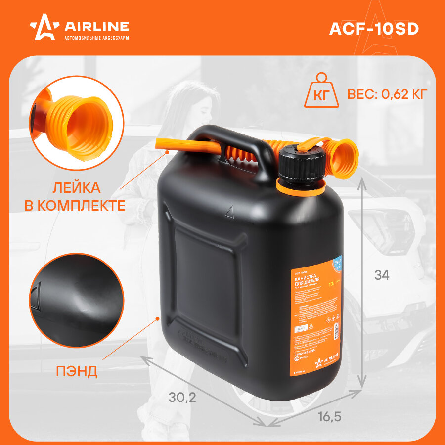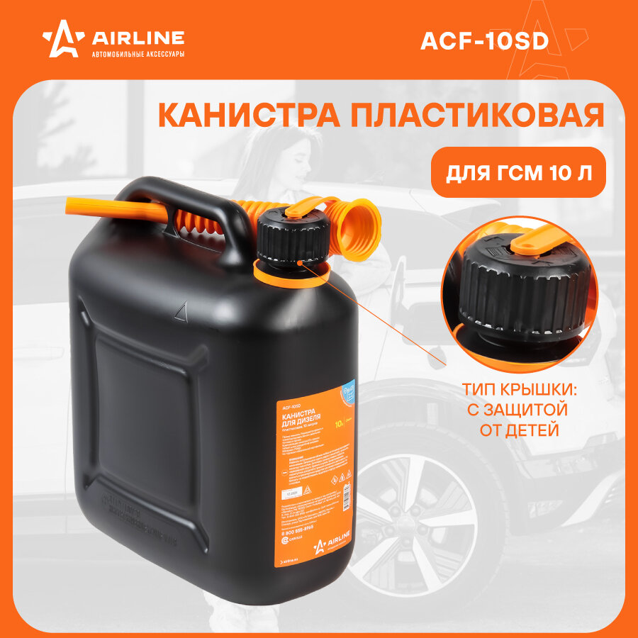 Канистра 10 л пластиковая для дизеля крышка с защитой от детей AIRLINE (ACF-10SD)
