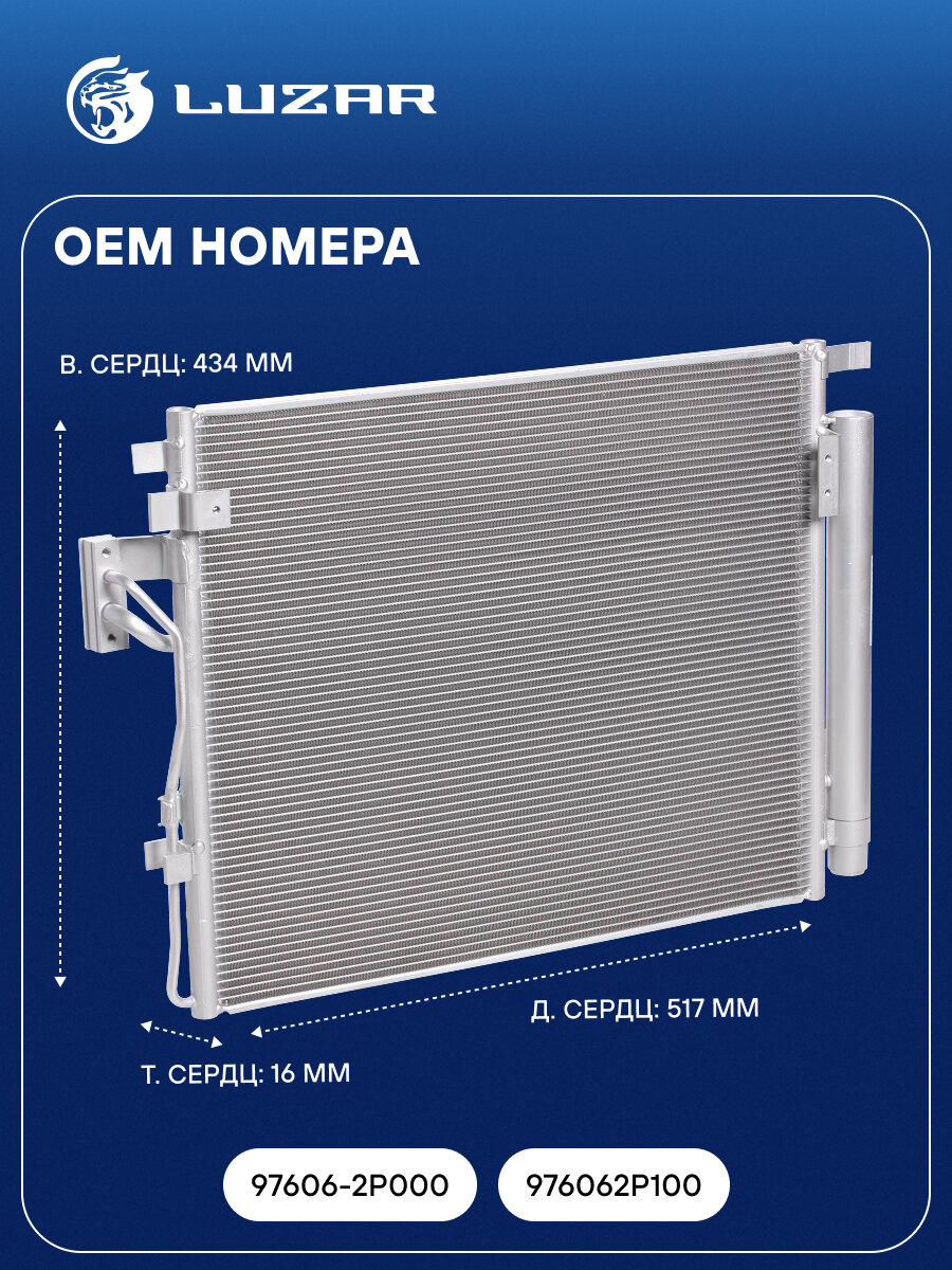 Радиатор кондиционера для автомобилей Sorento (09-) 2.0D/2.2D LUZAR (LRAC 0823)