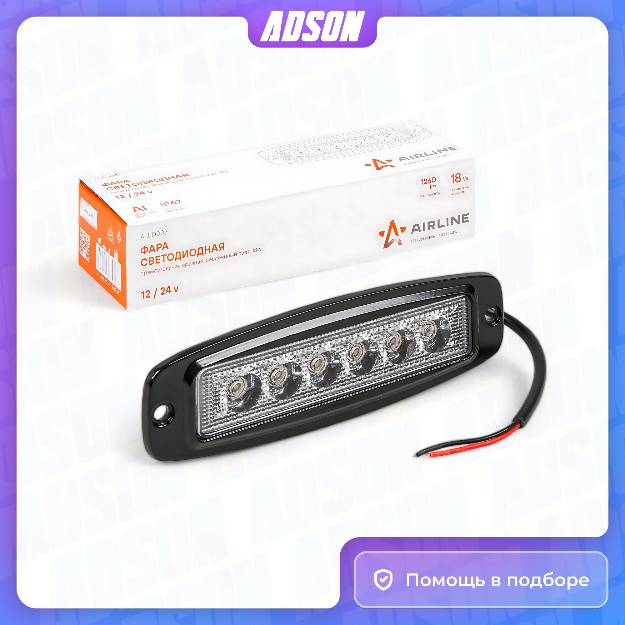 На сегодняшний день товар «Фара светодиодная прямоугольная врезная 6 LED рассеянный свет 18W (185х60х35) 12/24V AIRLINE (ALED007)» можно купить с кешбеком в 1 магазине: Яндекс.Маркет