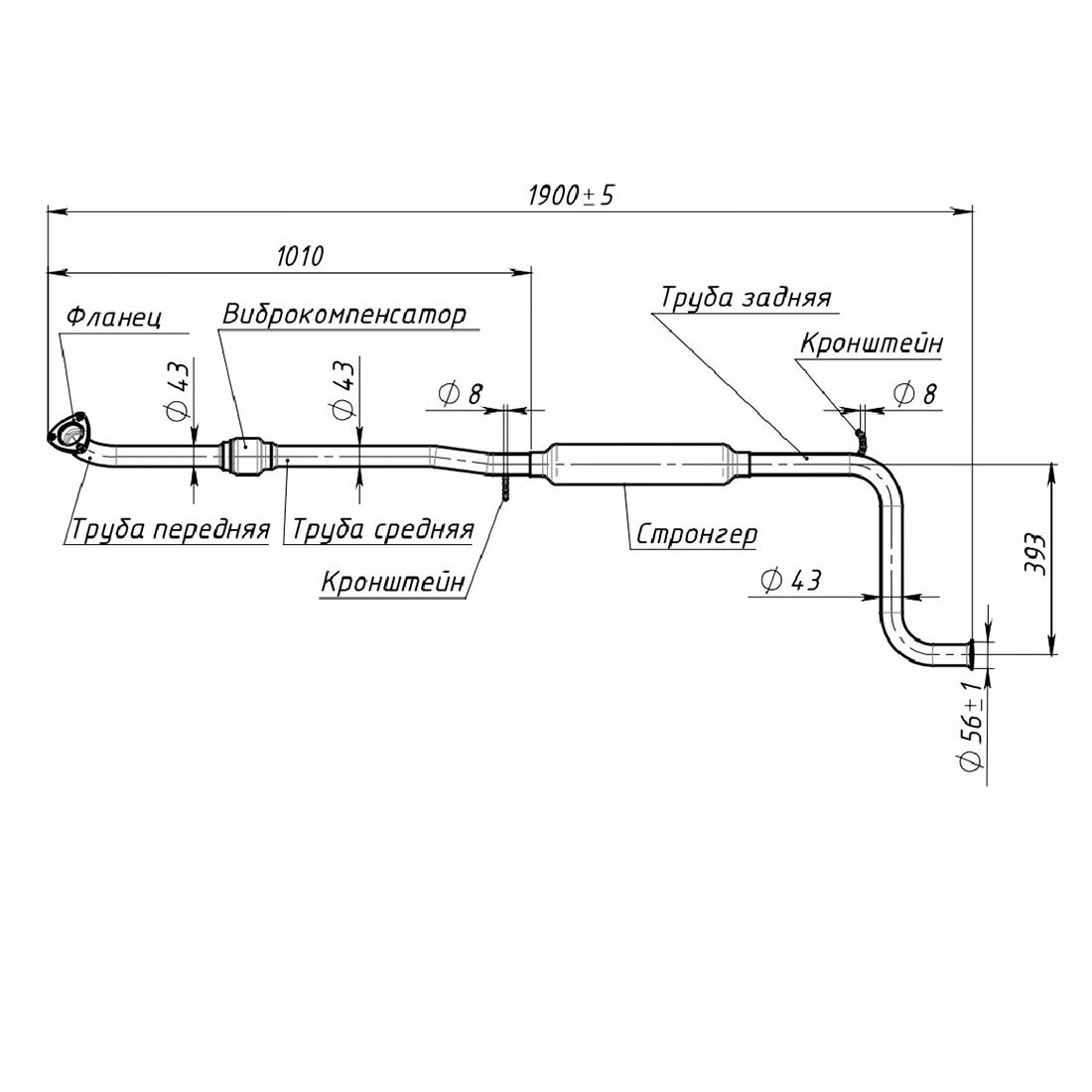 Глушитель для автомобилей Лада Granta (10-) дополнительный (резонатор) со стронгером (нержавеющая алюминизированная сталь) TRIALLI EAM 1202