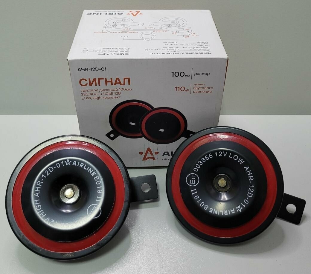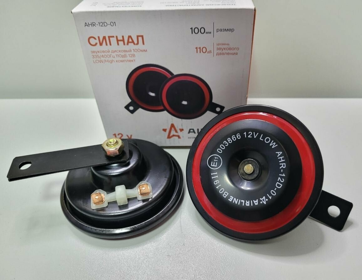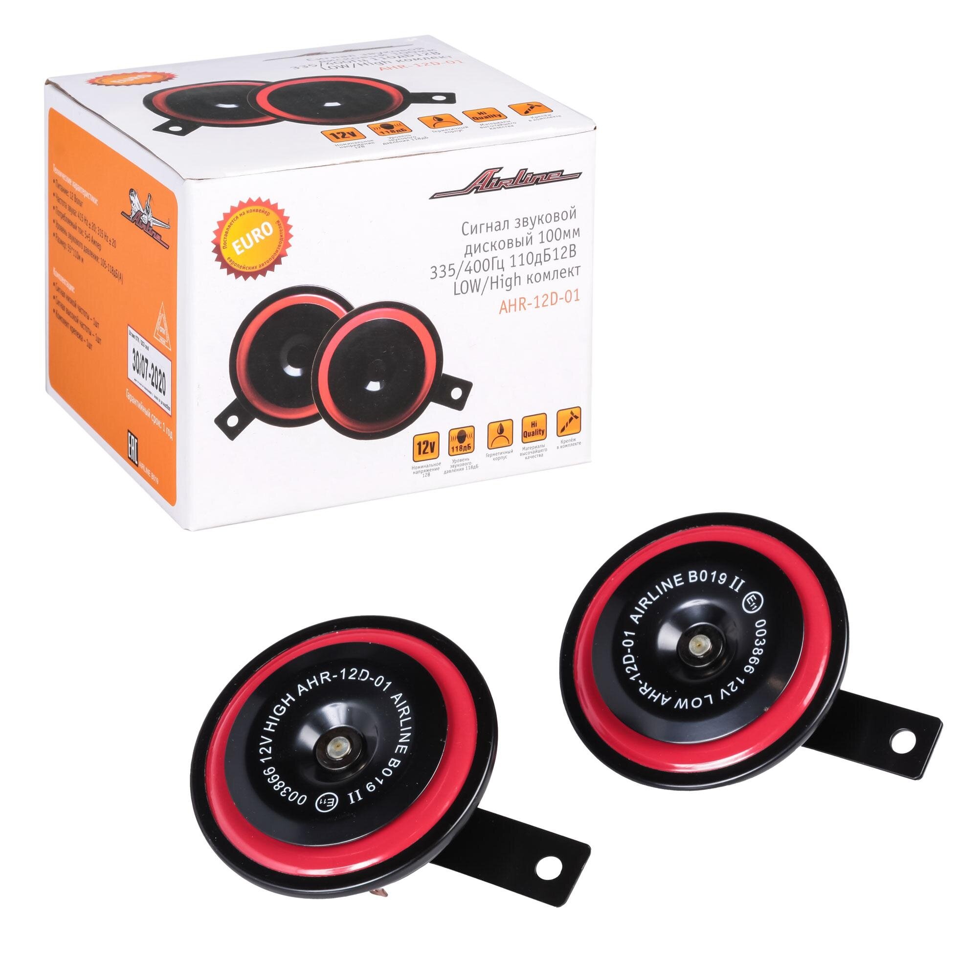 Сигнал звуковой дисковый 100мм 335/400Гц 110дБ 12В LOW/HIGH комплект AIRLINE (AHR-12D-01)